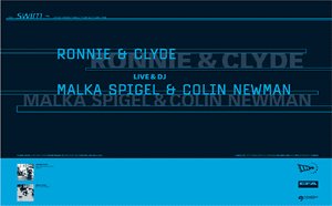 It had more or less sheeted down all day, the channel crossing offering little respite only some green faces. France was a blur even if the pay motorways are mercifully empty. So, the first gig sets the pattern for the tour. The night opens with some downtempo Djing from Billy (later Rob or Ron) after which Malka and I come on and play a set comprising of stuff from "My Pet Fish" with a few extra Newman/Spigel/Immersion things added. We play guitars and sing (although those familiar with the material will know that beats abound in plenty). Following on come Ronnie & Clyde live, a more uptempo set than their album would suggest, heading up to a breakbeat climax at the end. Then whoever is up for it to spin until local DJ relief is needed. In short a slow build through DJ and live. The locals seemed friendly and the club put on a top meal (well this was France) which got an especially good star rating from Ronnie & Clyde (it should be pointed out here that Rob & Ron's partners are both cooking professionals so good food is important, right!!!) | |||||