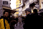 Tuesday, Wednesday, Thursday, Germany - Ulm/Konstanz/Augsberg. Phew, a country we've been to before. Ulm is solid little town in Southern Germany and a place where people like Bar Industries and Bernd Karner have been trying to establish a scene for a few years but it's hardly rock & roll central. Still the small audience really appreciated it so we must be doing something right. The following morning Luke who had started the tour with a mass of curls got himself a haircut at Rob's suggestion and much improved he looks too. |